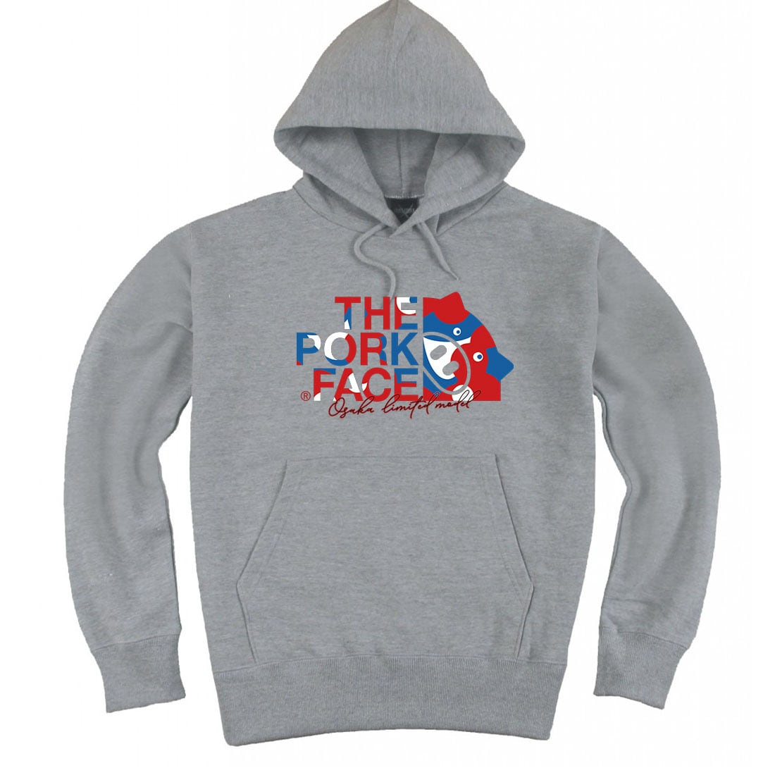 クロスステッチ プルオーバー パーカーにTHE PORK FACEのベンペク記念モデルのロゴを印字しました。通常は大阪限定で販売するモデルです。