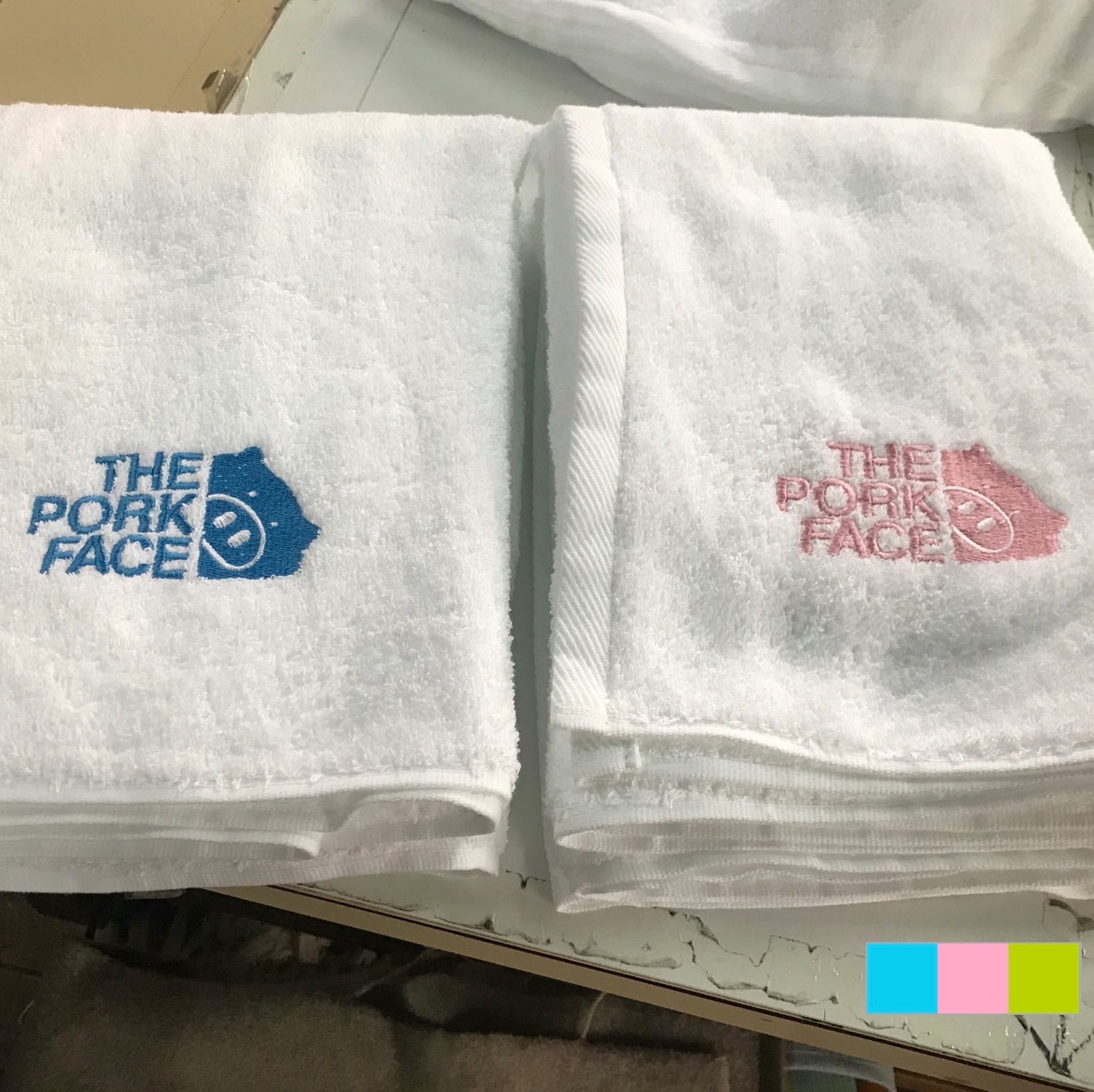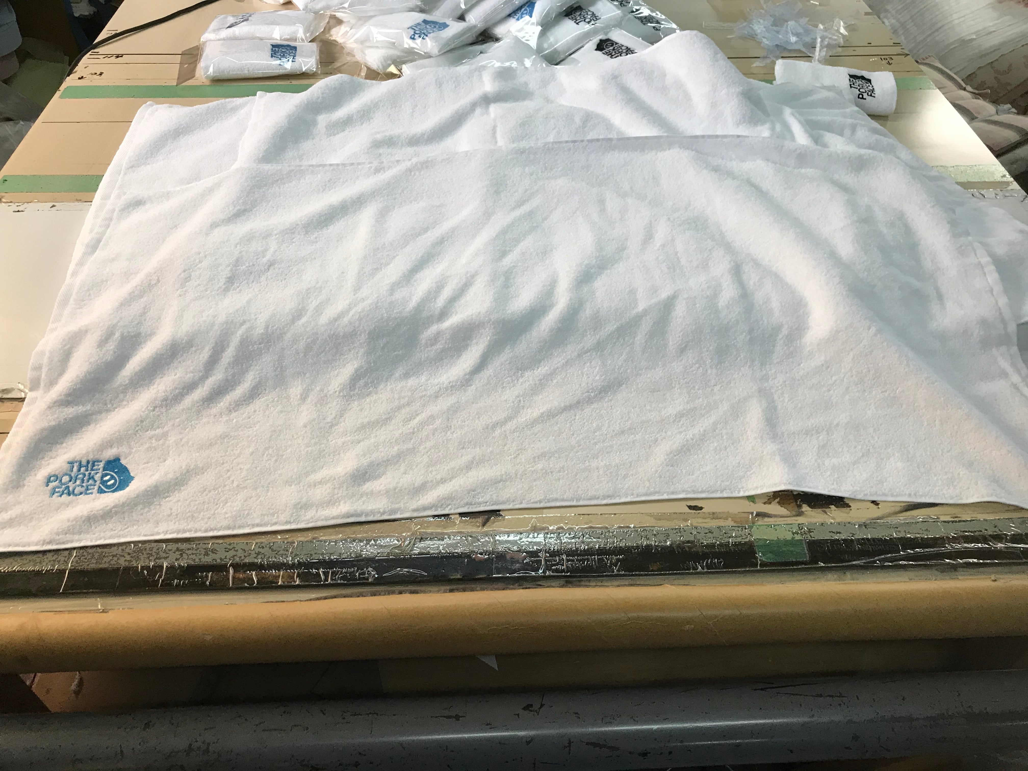 今回、この国内でも最高レベルを誇る泉州タオルにTHE PORK FACEの刺繍を施し販売する運びとなりました